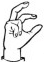 На ћирилици написано ЗОРАНА МИСКИН састоји се из 12 слова [?]. Исписано ћириличном једноручном азбуком за глувонеме: